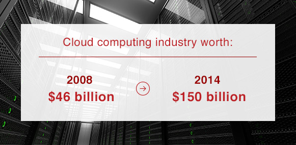 Cloud computing is one of the most rapidly growing technology industries today. In 2008, the cloud computing industry was worth about $46 billion, and by 2014 it had grown to $150 billion. That’s a growth of over 300 percent in only six short years. About 72 percent of businesses have already made the move to cloud computing, and that number is expected to increase to 91 percent within the next few years.